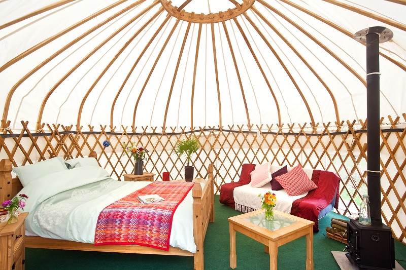 It is a perfect yurt for two people with a comfortable king size bed and bedside lockers. A sofa bed is also available for sitting in front of your lovely woodburning stove and this will open out for additional sleeping space when required.